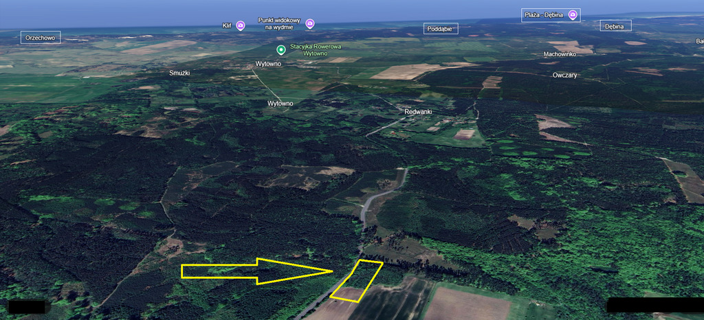 - dojazd z drogi asfaltowej prowadzącej do Poddąbia , Rowów lub Ustki