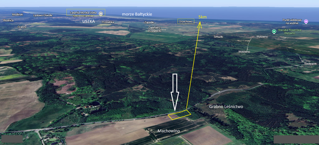 Na sprzedaż działka budowlana w miejscowości Machowino w gminie Ustka, zaledwie 7 km od morza Bałtyckiego. Działka o powierzchni 0,5000 ha, niezabudowana w kształcie prostokąta częściowo zadrzewiona i położona w otulinie lasów. Teren działki płaski, położony na lekkim wzniesieniu z widokiem na wieś Machowino. Działka położona na terenie objętym Studium uwarunkowań i kierunków zagospodarowania przestrzennego Gminy Ustka jako tereny rozwoju zabudowy mieszkaniowej i usługowej. Cisza, spokój, w okolicy las i pola uprawne oraz niska zabudowa jednorodzinna. W ofercie sprzedaży także działka sąsiednia o powierzchni 0,3000 ha.