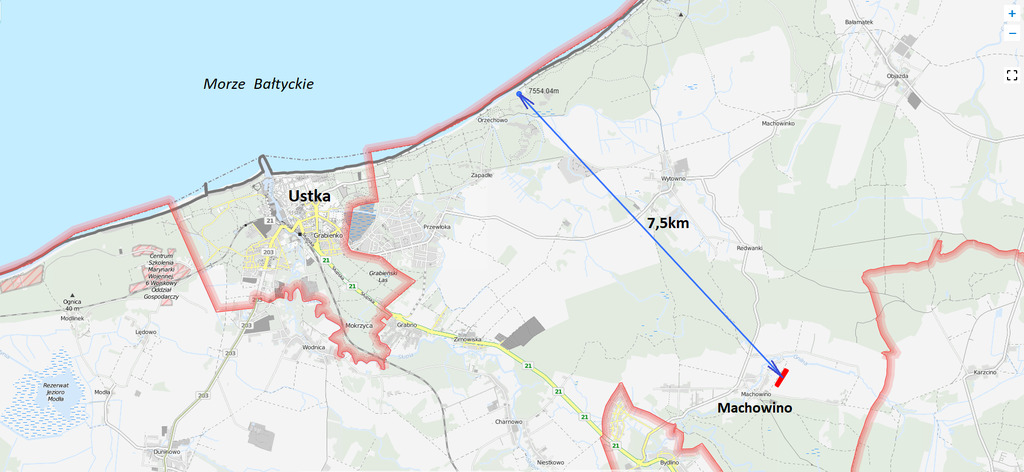 Na sprzedaż działka budowlana w miejscowości Machowino w gminie Ustka, zaledwie 7 km od morza Bałtyckiego. Działka o powierzchni 0,3000 ha, niezabudowana w kształcie prostokąta, niezadrzewiona i niezakrzewiona, położona w otulinie lasów. Teren działki płaski, położony na lekkim wzniesieniu z widokiem na wieś Machowino. Działka położona na terenie objętym Studium uwarunkowań i kierunków zagospodarowania przestrzennego Gminy Ustka jako tereny rozwoju zabudowy mieszkaniowej i usługowej. Cisza, spokój, w okolicy las i pola uprawne oraz niska zabudowa jednorodzinna. W ofercie sprzedaży także działka sąsiednia o powierzchni 0,3000 ha.