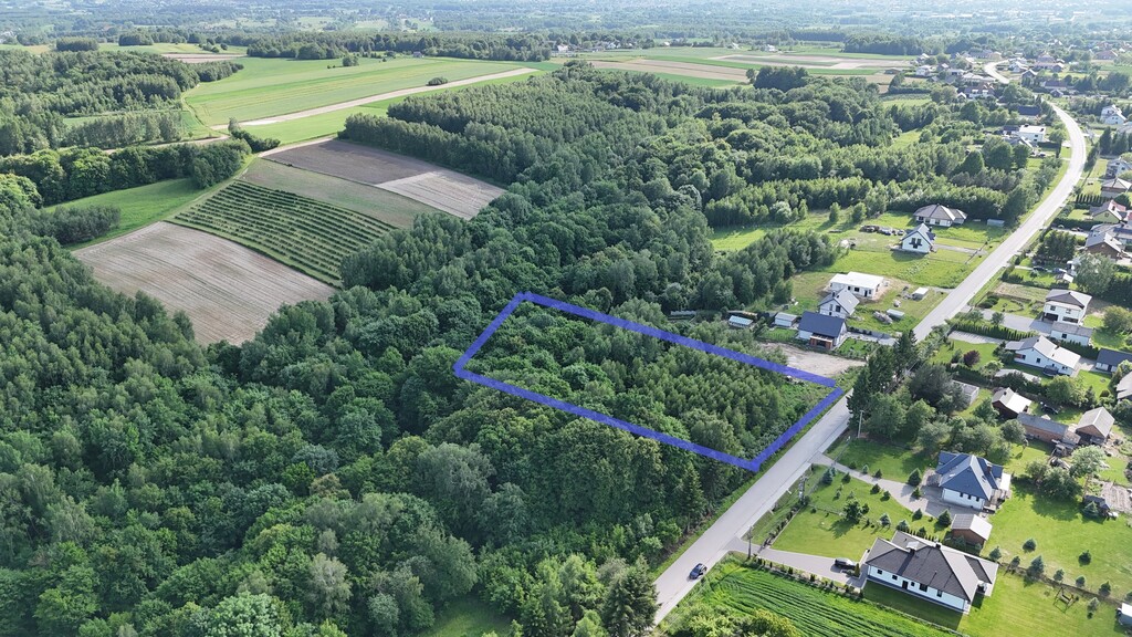 Działki o powierzchni 3022m2 i 3024m2, o kształcie prostokątów, bezpośrednio przy głównej ulicy.