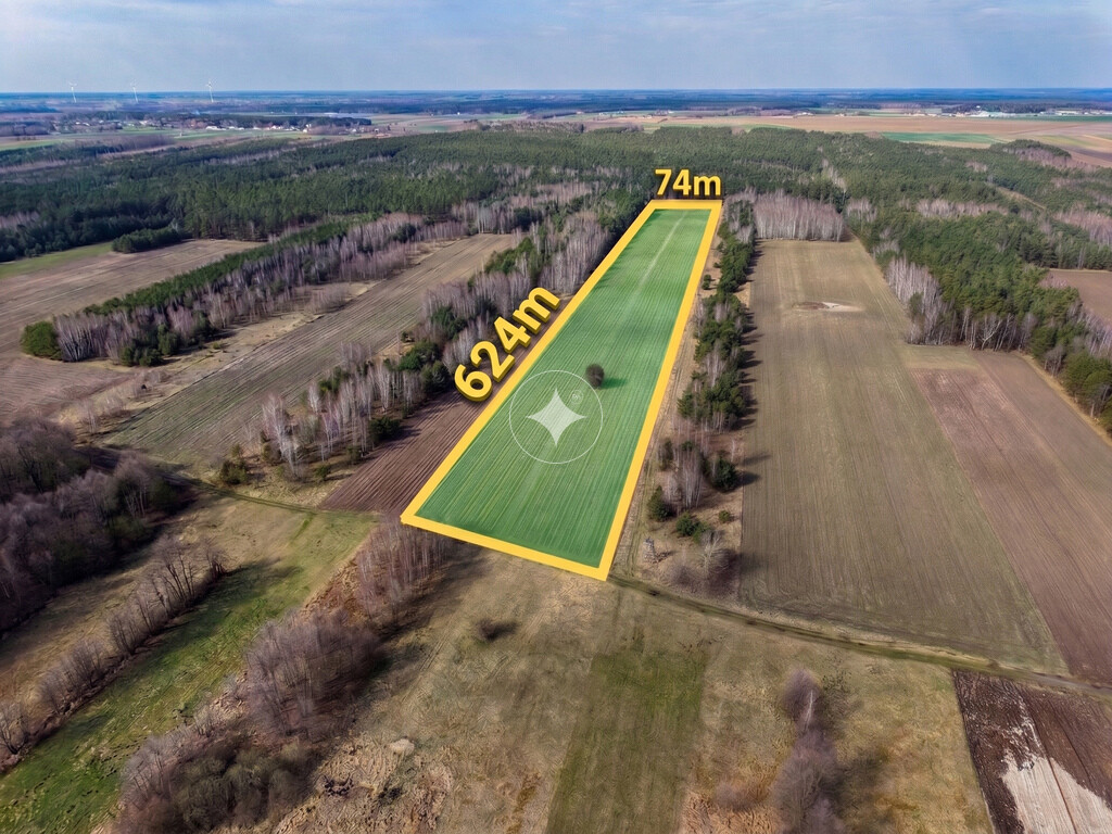 Działka usytuowana jest w otoczeniu pól i łąk, pomiędzy gruntami rolnymi – spokojna, otwarta przestrzeń sprzyjająca działalności rolniczej lub inwestycyjnej.