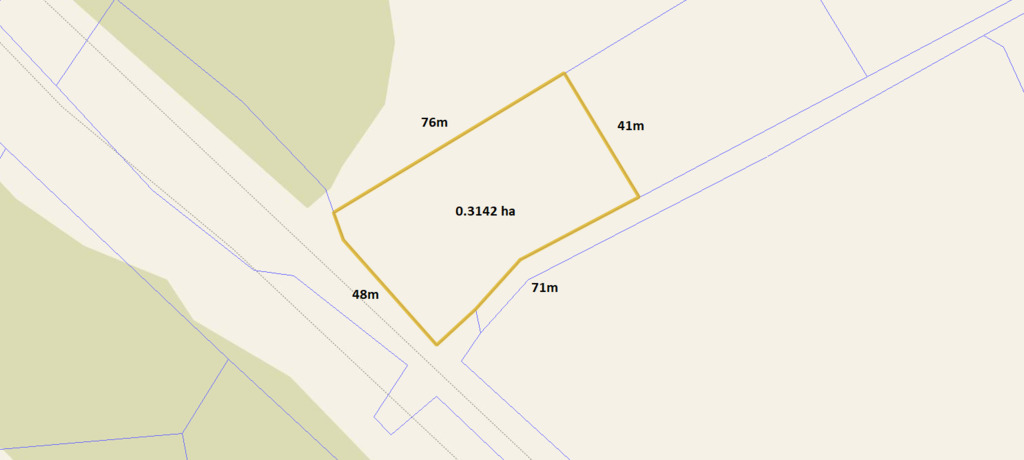 Działka jest płaska i ma kształt zbliżony do prostokąta o szerokości 48 m i długości 76 m.