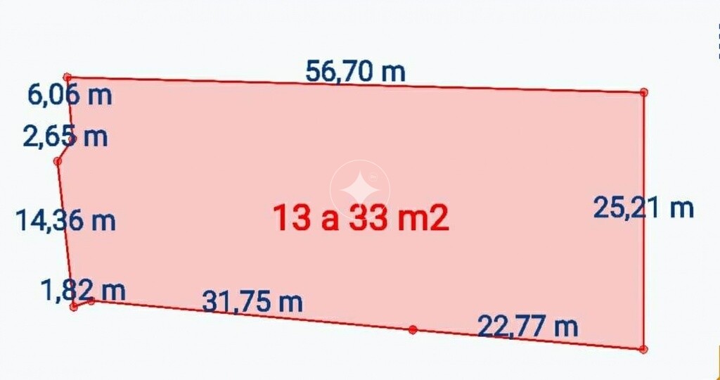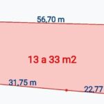 Działka położona w drugiej linii zabudowy, w kształcie zbliżonym do prostokąta o wymiarach 56m długości i 25m szerokości.