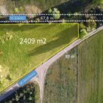 Powierzchnia działki wynosi 2409 mkw. i jest w kształcie zbliżonym do trójkąta o wymiarach: 9,82 m x 88,5 m x 60 m x 67,8 m. Nieruchomość zadbana regularnie koszona i bez nasadzeń. Teren płaski i suchy. Dojazd do nieruchomości odbywa się drogą publiczną utwardzoną o szerokości 10 m. Przez działkę przechodzi napowietrzna linia elektroenergetyczna średniego napięcia SN 15 kV.