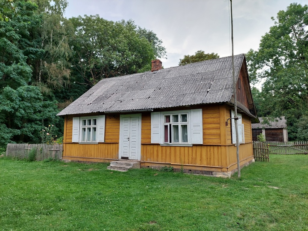 - na działce znajduje się drewniany dom i stodoła