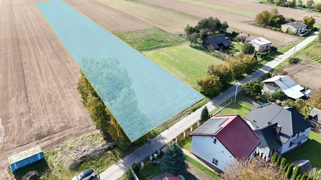 Działka o łącznej powierzchni 13.267 m2 w kształcie prostokąta o wymiarach ok. 29m x 472m.