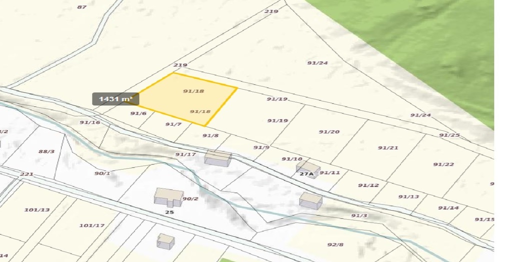 Nieruchomość stanowiąca działkę nr 91/18 o powierzchni 1431m2 położona jest w zurbanizowanej części wsi. Kształt regularny. Dojazd do nieruchomości drogą gruntową. Teren w większości płaski.