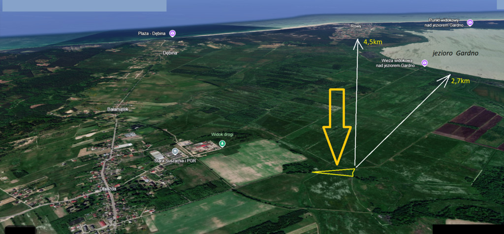 Na sprzedaż działka rekreacyjna w otoczeniu pól, lasu, blisko jeziora Gardno w miejscowości Objazda. Działka położona przy drodze gminnej, zaledwie 2,7 km od jeziora Gardno oraz około 5 km od morza Bałtyckiego i miejscowości Rowy. Powierzchnia działki to 0,5100 ha, teren płaski niezalesiony z wjazdem z ulicy Parkowej, nieuzbrojona w media. Na danym terenie obowiązuje studium uwarunkowań i kierunki zagospodarowania przestrzennego Gminy Ustka - działka na terenie obszaru łąk Objejskich oraz w otulinie słowińskiego Parku Narodowego w granicach Gminy Ustka. Miejsce idealne dla osób szukających ciszy i spokoju oraz kontaktu z naturą.