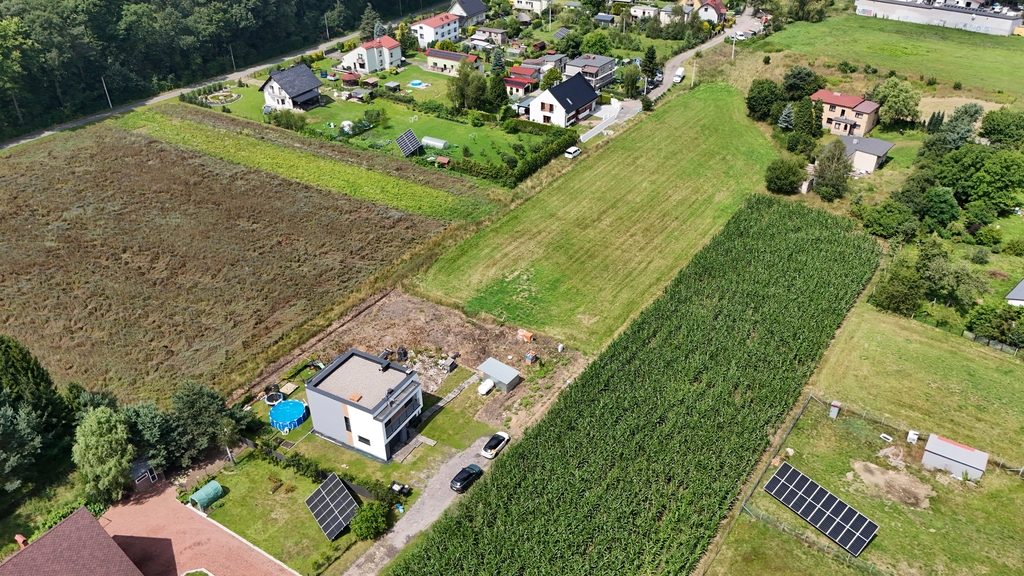 Działka w otoczeniu domów jednorodzinnych, pól oraz lasów. Do centrum Orzesza  około 4 km ( Szkoły, Przedszkola, Markety i cała infrastruktura towarzysząca ). Do większych miast : Żory ok. 10 km, Mikołów ok. 20 km. Dogodny wyjazd na A1.