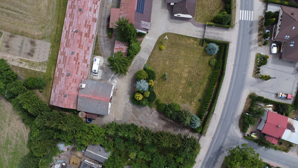 Na terenie działki znajdują się dwa budynki gospodarcze. Pierwszy z nich to przestronny budynek o powierzchni ponad 1200 m², który może być wykorzystany na różnorodne cele - od magazynowania, przez produkcję. Drugi budynek to hangar o powierzchni 450 m², który idealnie nadaje się na magazyn, warsztat lub inne zastosowania przemysłowe.
