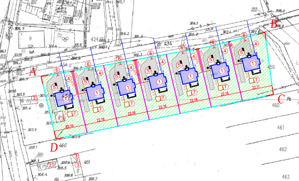• Powierzchnia ok. 1000 m² – działki prostokątne (22 × 46 m), ustawne, idealne pod dom parterowy lub piętrowy z ogrodem.