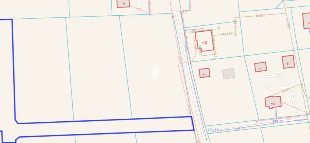 Gminne sieci, Sieci, energetyczna i wodociągowa biegną w odległości ok. 130 m, kanalizacyjna ok. 210 m.