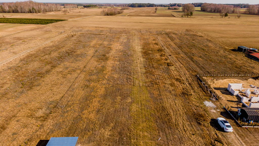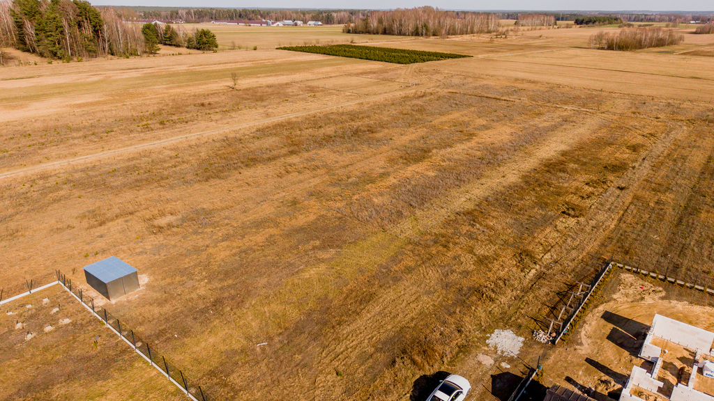 Nieruchomość ma regularny, prostokątny kształt o wymiarach ok. 30,8 x 33,8 m, co stwarza bardzo dobre warunki do zagospodarowania i realizacji inwestycji. Działka znajduje się w spokojnej i malowniczej okolicy, w otoczeniu lasów, pól oraz otwartej przestrzeni, a jednocześnie w sąsiedztwie nowo powstającej zabudowy jednorodzinnej.