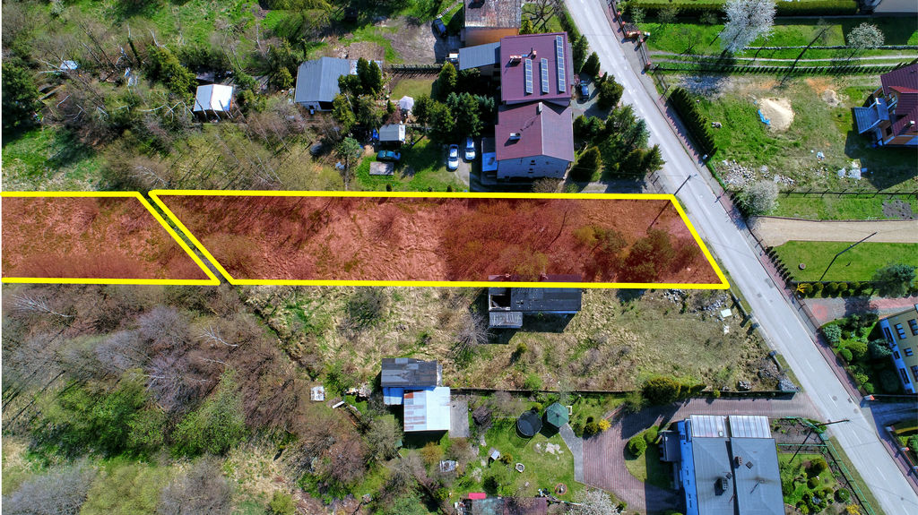 W skład nieruchomości wchodzą dwie działki o nr geodezyjnych 2761 i 2623 oddzielone od siebie strumyczkiem. Bliskość cieku wodnego stwarza możliwość wykonania oczka wodnego lub stawu. Szerokość działek około 15 -16 m. Długość działek około 160 m, pozwala na stworzenie strefy wypoczynkowej z dala do drogi i sąsiadów.