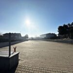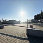 Plac oświetlony i ogrodzony.