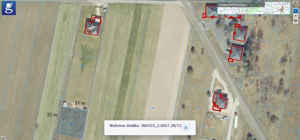 Wymiary działki 31 m x 32 m.