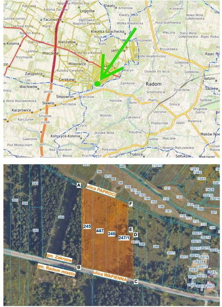 Numery ewidencyjne działek: 245, 447, 246, 247/1