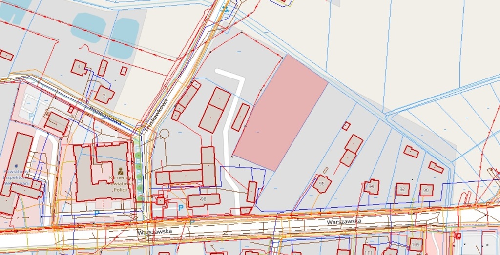 W sąsiedztwie istniejąca zabudowa jednorodzinna oraz nowe domy, posterunek policji, Zakład PGE.