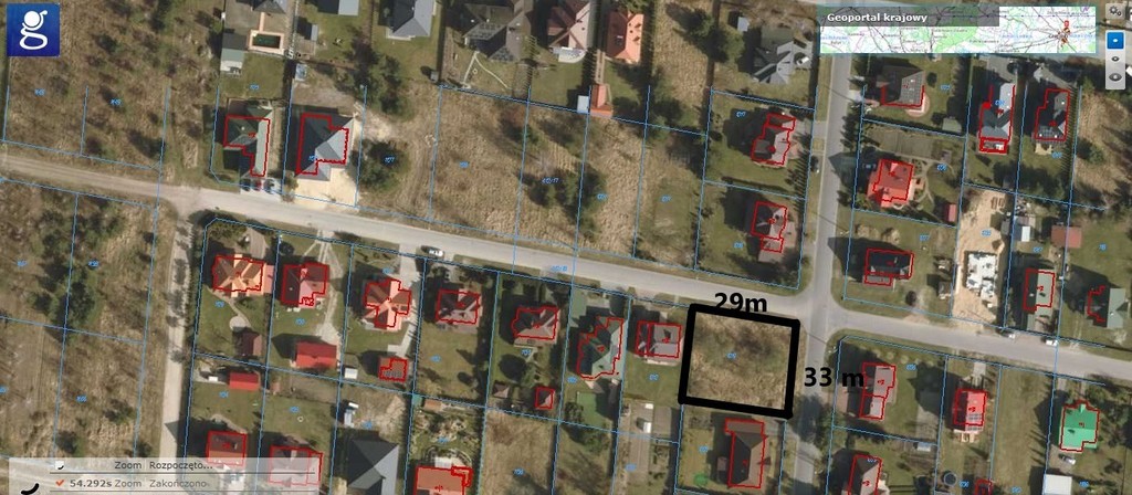 Działka ma powierzchnię 964 m2, obok zabudowa jednorodzinna.