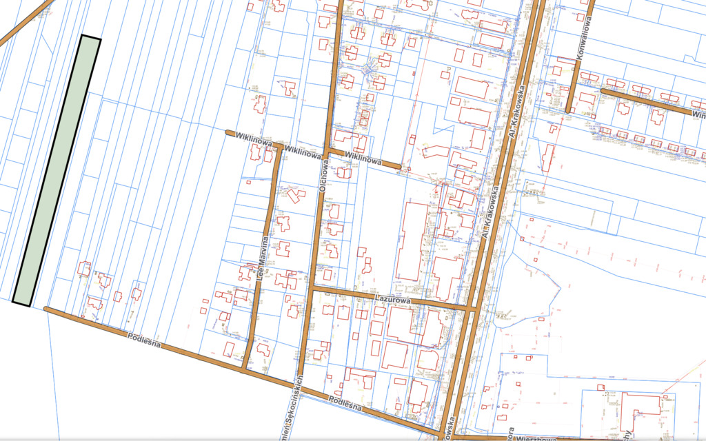 - Możliwość realizacji pełnego osiedla z drogą wewnętrzną
