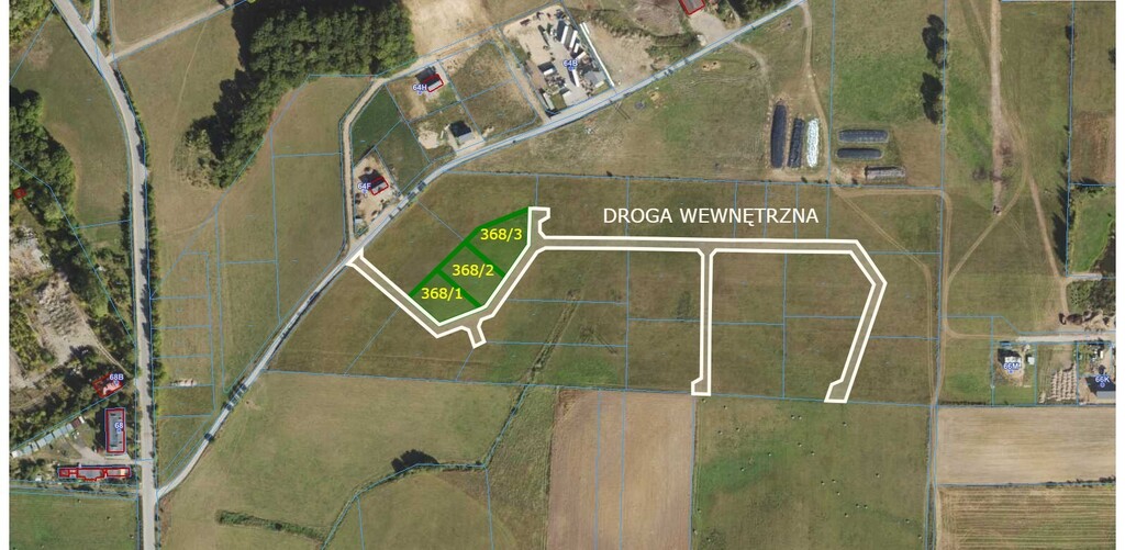 Działki o powierzchni od 1115 do 4025m2 z możliwością przekształcenia pod zabudowę mieszkaniową.