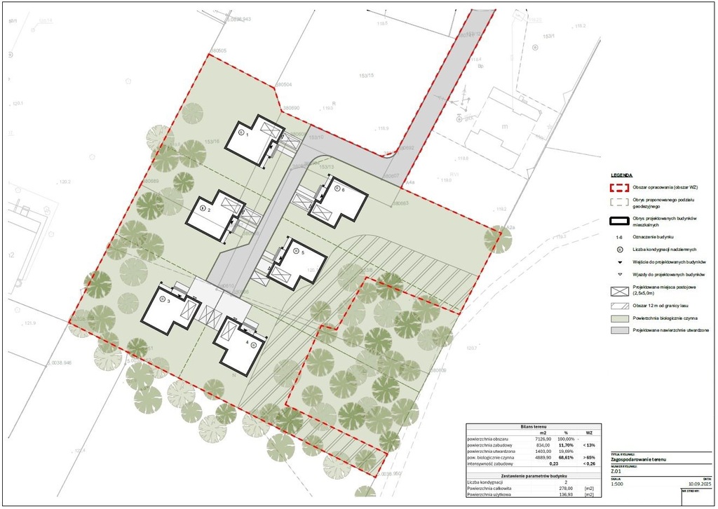 Wydana WZ na 6 domów jednorodzinnych po 135 m2.
