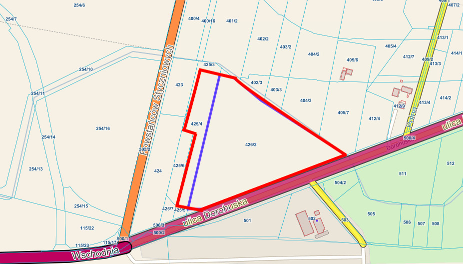 - Zagospodarowanie infrastrukturalne — biurowo-magazynowe zaplecze firm transportowych.