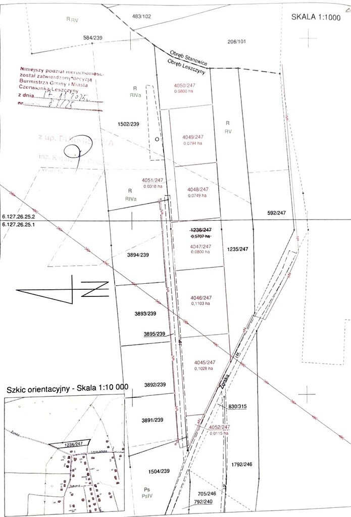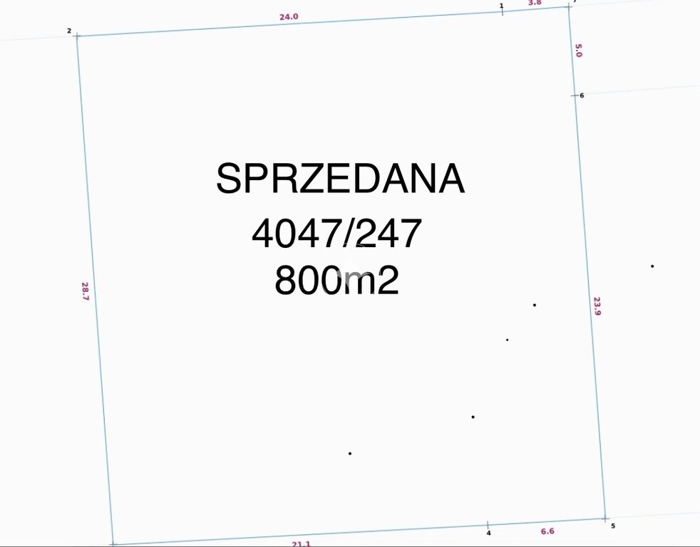 Powierzchnie działek w ofercie: - 4046/247 - 1028 m²
