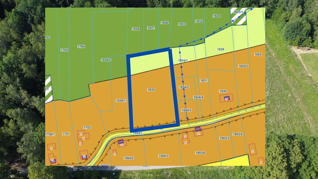 Przeznaczenie w MPZP: 40MN (tereny zabudowy mieszkaniowej jednorodzinnej): 4804 m², 50ZR (teren zieleni nieurządzonej): 1475 m², 9KDD (tereny dróg publicznych - dojazdowej) przy drodze gminnej