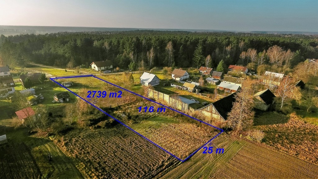 Działka ma powierzchnię 2739 m2, obok zabudowa jednorodzinna.