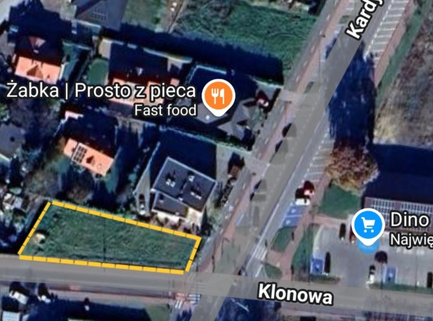 Działka położona jest przy asfaltowej drodze z chodnikiem, naprzeciwko sklepu Dino oraz blisko Kościoła, galerii Venus i przystanka autobusowego.
