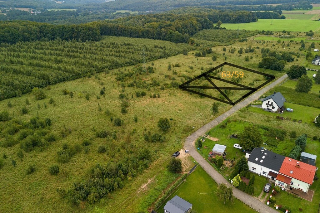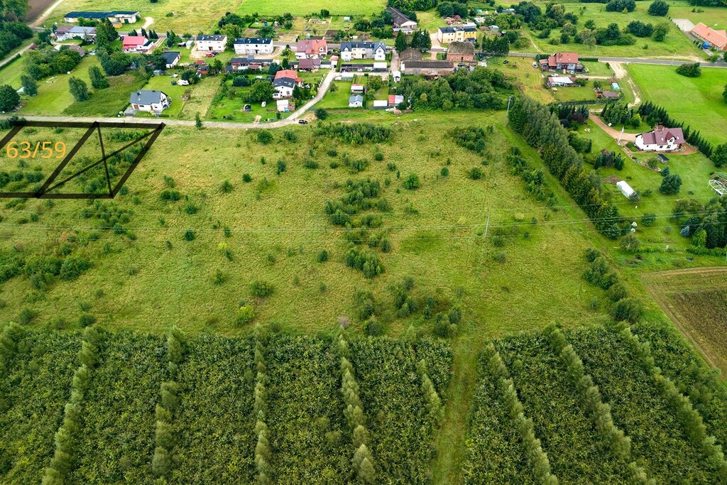 Działka budowlana, w kształcie prostokąta, o wymiarach ok. 40 x ok 53 m. Dojazd do działki drogą utwardzoną, zmodernizowaną przez gminę w 2022 r. Działka znajduje się w trzeciej linia zabudowy od drogi prowadzącej do miejscowości, w bliskiej odległości od terenów leśnych.