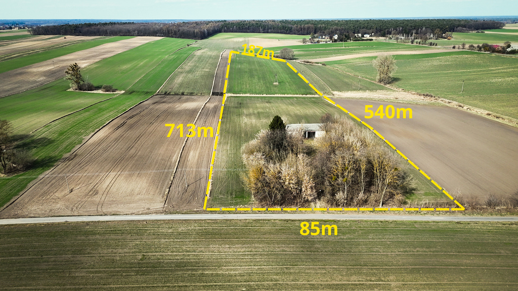 Na działce znajdują się liczne drzewa oraz pozostałość gospodarstwa - stodoła w dobrym stanie technicznym, wraz z budynkiem gospodarczym (murowanym) nadającym się do rozbiórki.