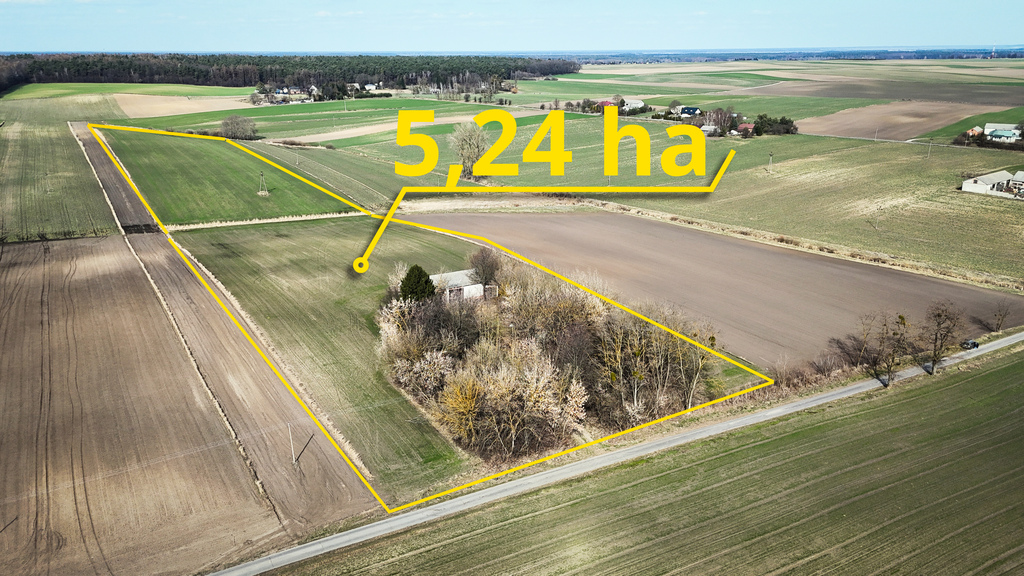Na sprzedaż działka rolna, w której skład wchodzą grunty orne klasy II (3,68 ha),  IIIa (0,67 ha), IIIb (0,58 ha),  S-R – Sady na gruntach ornych (0,13 ha) , Rowy/łąki/użytki (0,02 ha) oraz zabudowania gospodarcze wraz z sadem na powierzchni 0,13 ha na II klasie gruntu.