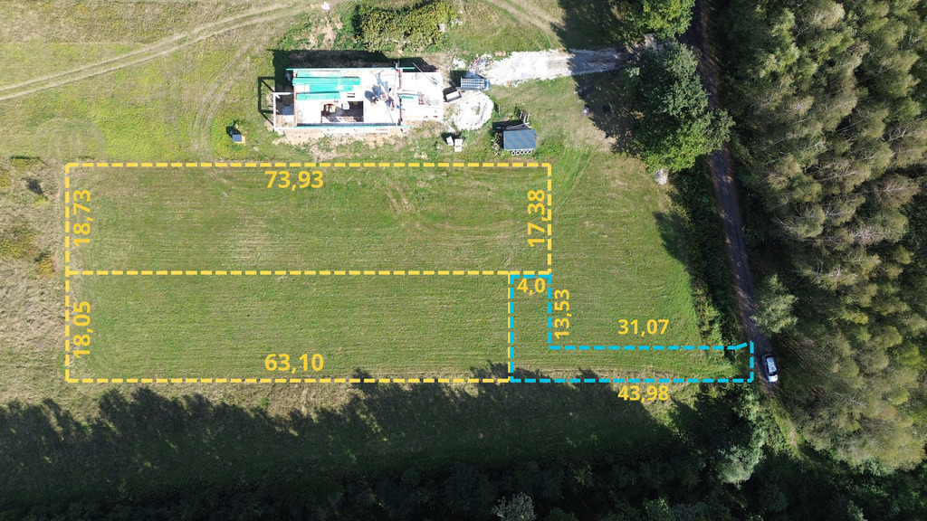 - Dojazd: droga utwardzona, wydzielona droga do każdej z działek