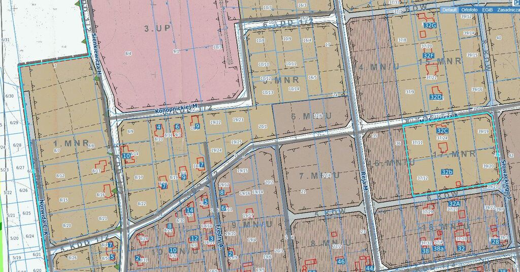 1) teren istniejącej i projektowanej zabudowy mieszkaniowej jednorodzinnej rezydencjonalnej w formie wolnostojącej i bliźniaczej dla wszystkich terenów MNR.