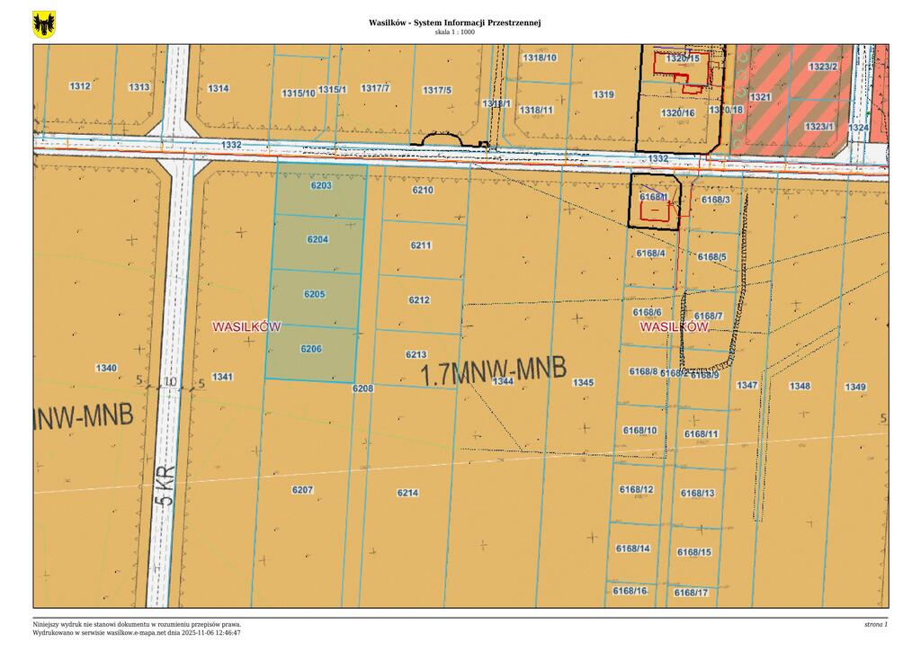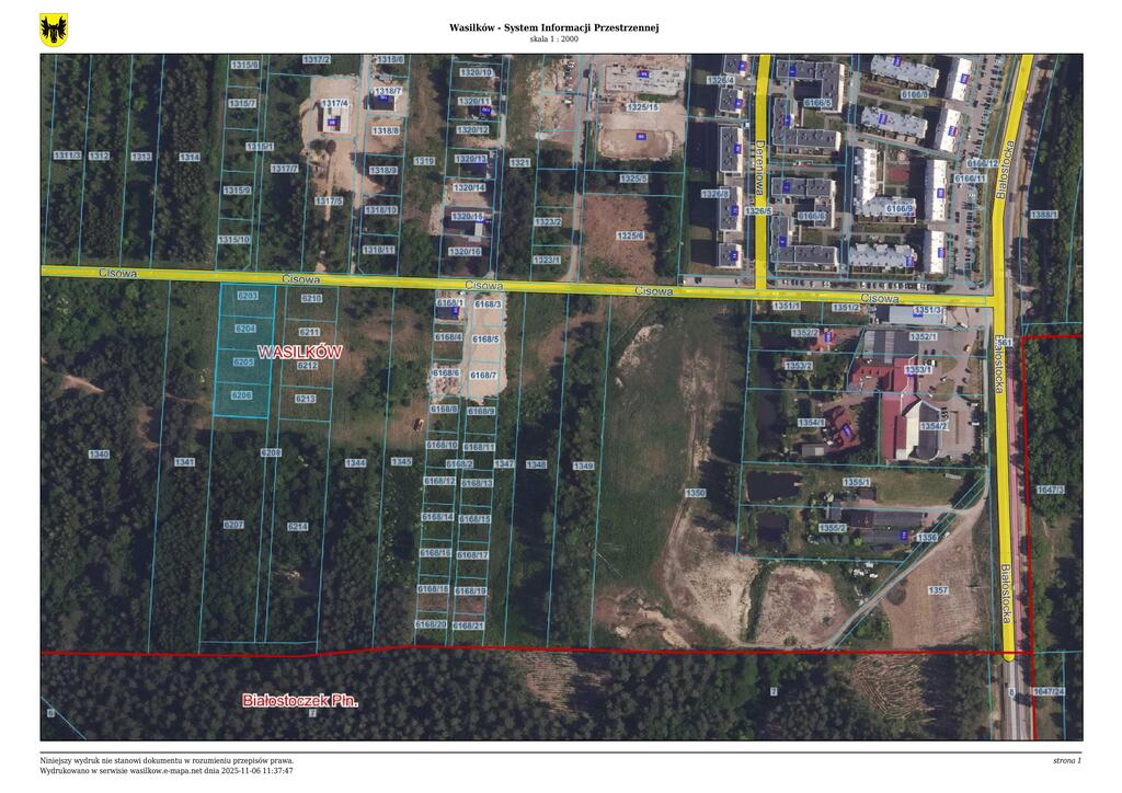Działki znajdują się na terenie objętym ustaleniami miejscowego planu zagospodarowania przestrzennego części obszaru miejscowości Wasilków w rejonie ulicy Nadawki i Cisowej - etap I.