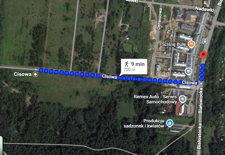 W sąsiedztwie nowa zabudowa jednorodzinna, lasy, piękne tereny zielone, idealne do rekreacji i odpoczynku. Cicha i spokojna okolica. W bezpośrednim sąsiedztwie ul. Białostockiej znajduje się  zabudowa mieszkaniowa wielorodzinna, wyposażona w niezbędne usługi: sklep spożywczy, przedszkole, usługi kosmetyczne i fryzjerskie, apteka, bistro.