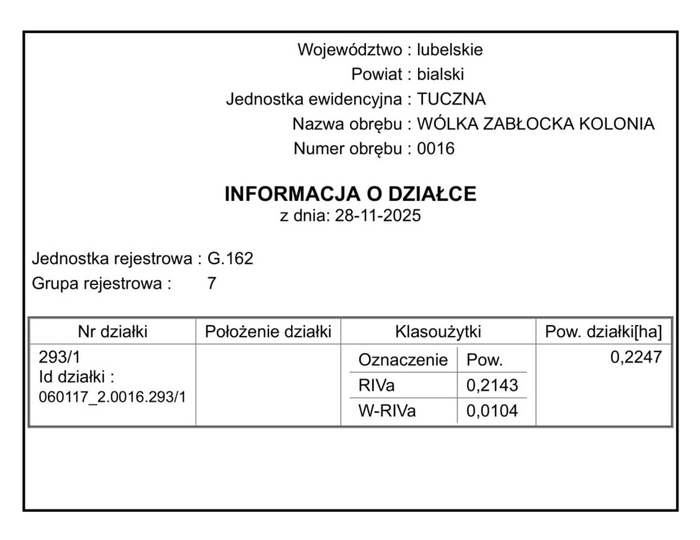 Działka  jest położona w miejscowości Wólka Zabłocka Kolonia, gmina Tuczna
