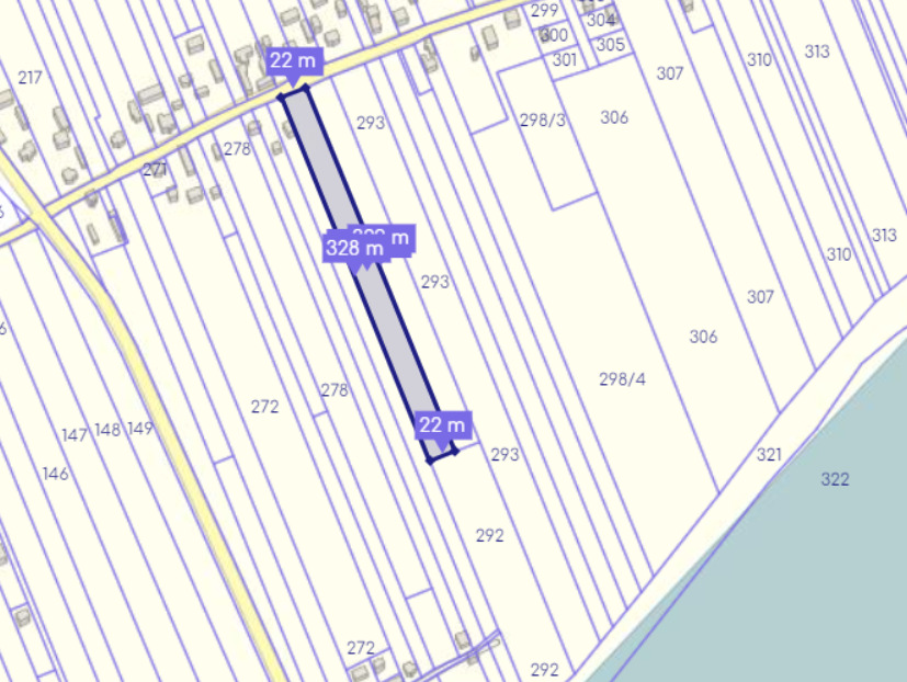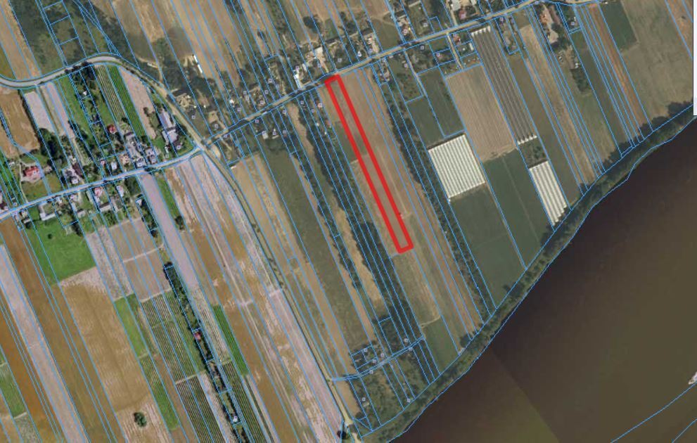 Działka w kształcie prostokąta o powierzchni 7300 m2. Położona jest około 100 metrów od brzegów Wisły i około 800 metrów od przyczółku wiślanego z którego można zwodować kajaki, łódki czy skutery wodne.