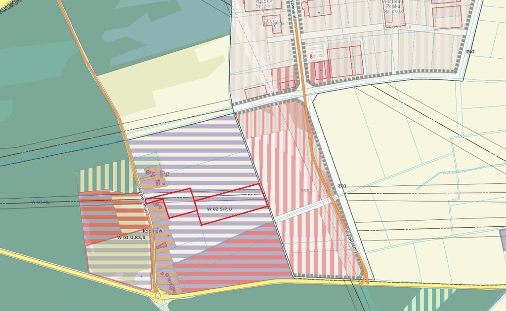 • §5 Ustalenia szczegółowe W 02 S/P,U - Teren projektowanych składów, hurtowni i nieuciążliwej produkcji.
