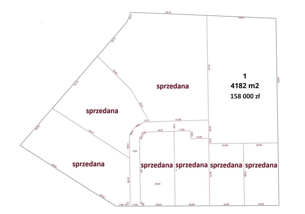 Działka ma powierzchnię 4182 m2 i składa się z użytków: