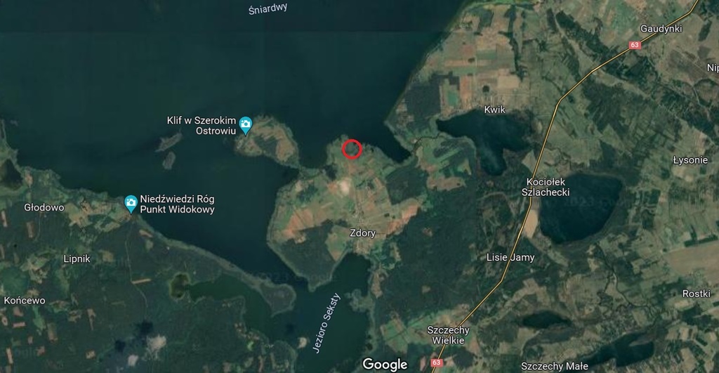 Jest położona nad samym jeziorem Śniardwy w miejscowości Zdory, Gmina Pisz.