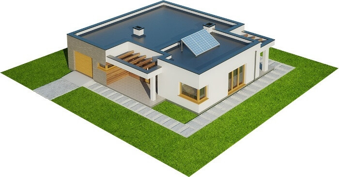 W cenie otrzymujesz projekt nowoczesnego domu z płaskim dachem — projekt Oliwnik 2L (odbicie lustrzane), wentylacja mechaniczna z rekuperacją, powierzchnia użytkowa domu wraz z garażem wynosi 157,12 m2. Wydano pozwolenie na budowę w listopadzie 2021 r., projekt zaadaptowany na działkę, pozostało już tylko się budować.