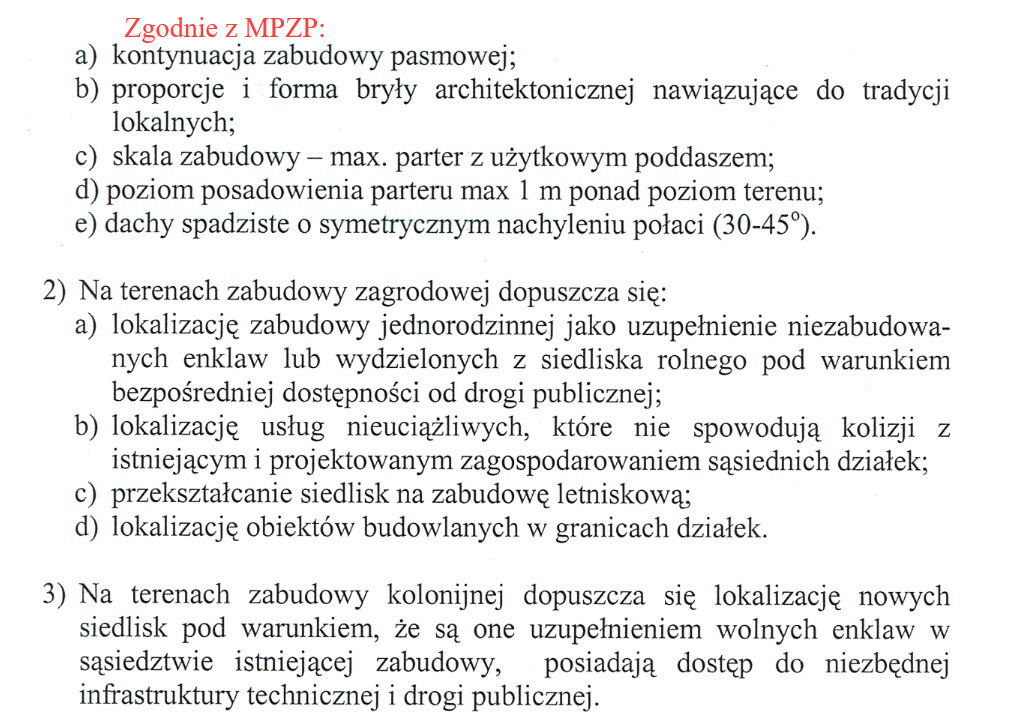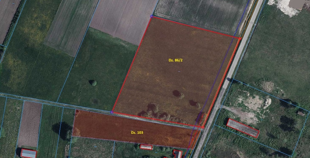 * Obowiązujący MPZP (dla działki 103) – możliwość zabudowy zagrodowej, a po sąsiedzku działka rolna 86/2