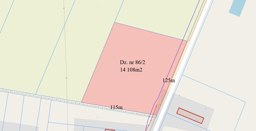 dla osób poszukujących spokojnej, wiejskiej okolicy z dobrym dostępem do mediów i dróg asfaltowych oraz planem na prowadzenie działalności rolniczej.Działka nr 86/2 - Powierzchnia: 14 108 m²