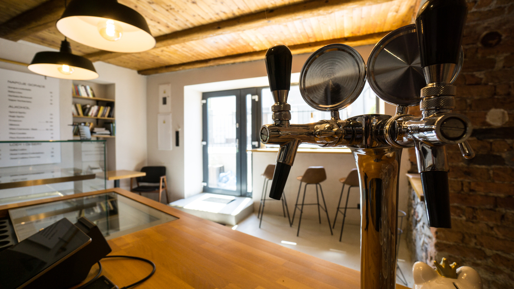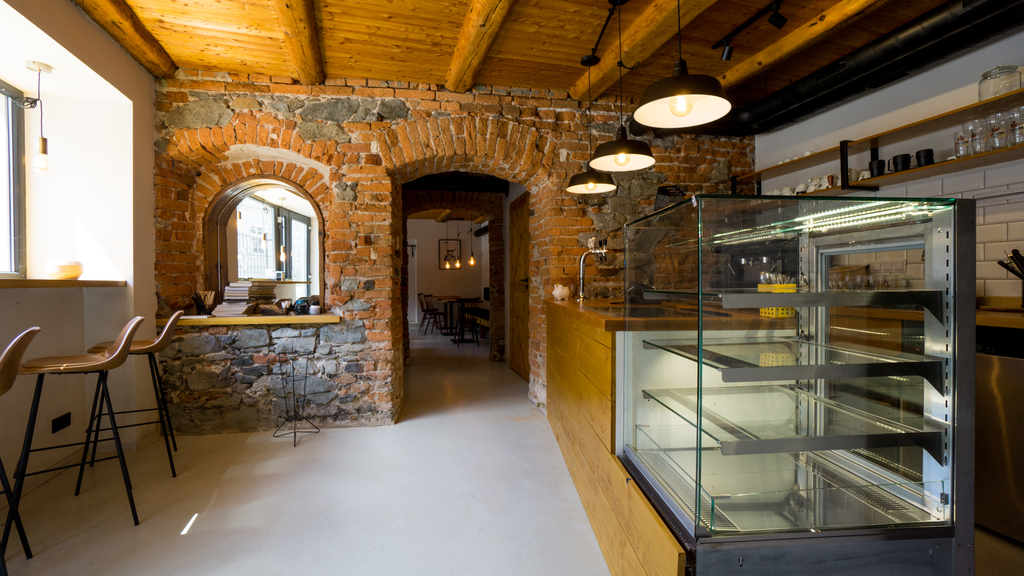Kawiarnia jest wykończona w stylu loftowym, gotowa to uruchomienia od zaraz