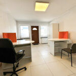 W lokalu wydzielona została przestrzeń na WC z umywalką oraz został on wyposażony w meble biurowe- szafę, komodę z szufladami i szafkę wiszącą zamykane na klucz, biurka z krzesłami oraz wieszak na odzież wierzchnią.