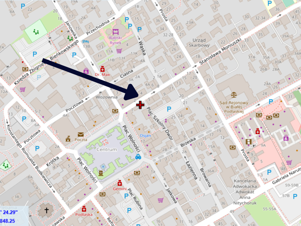 centrum Białej Podlaskiej – przy ul. Moniuszki 3.