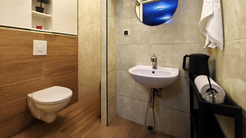 - w łazience terakota oraz nowe meble robione pod wymiar.